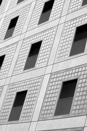 Wenn man vor der Stadtbibliothek mit ihrer spektakulären Architektur steht und hat zufällig eine Kamera dabei, dann lockt es natürlich schon, auf den Auslöser zu drücken. Gerade in Schwarzweiß entfaltet der mächtige Koloss seinen besonderen Reiz.